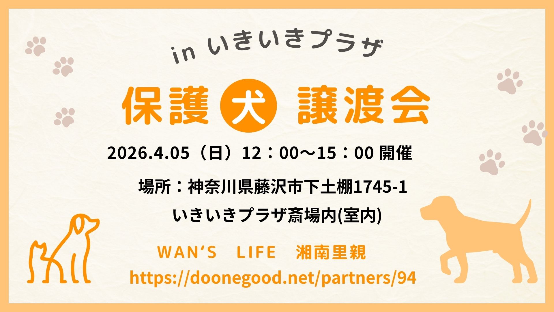 前回開催時と同じく、動物愛護センター登録ボランティアとして活動されている「WAN’S LIFE 湘南里親」と協同になります♪